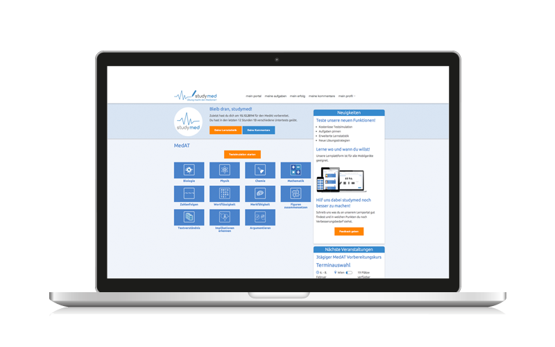 studymed ist eine einzigartige Lernplattform zur Vorbereitung auf den MedAT. Hier findest du über 200 Lehrvideos, unzählige Übungsbeispiele sowie eine komplette Testsimulation inklusive personalisierter Lernstatistik – und das alles ab einmalig 59,90€.